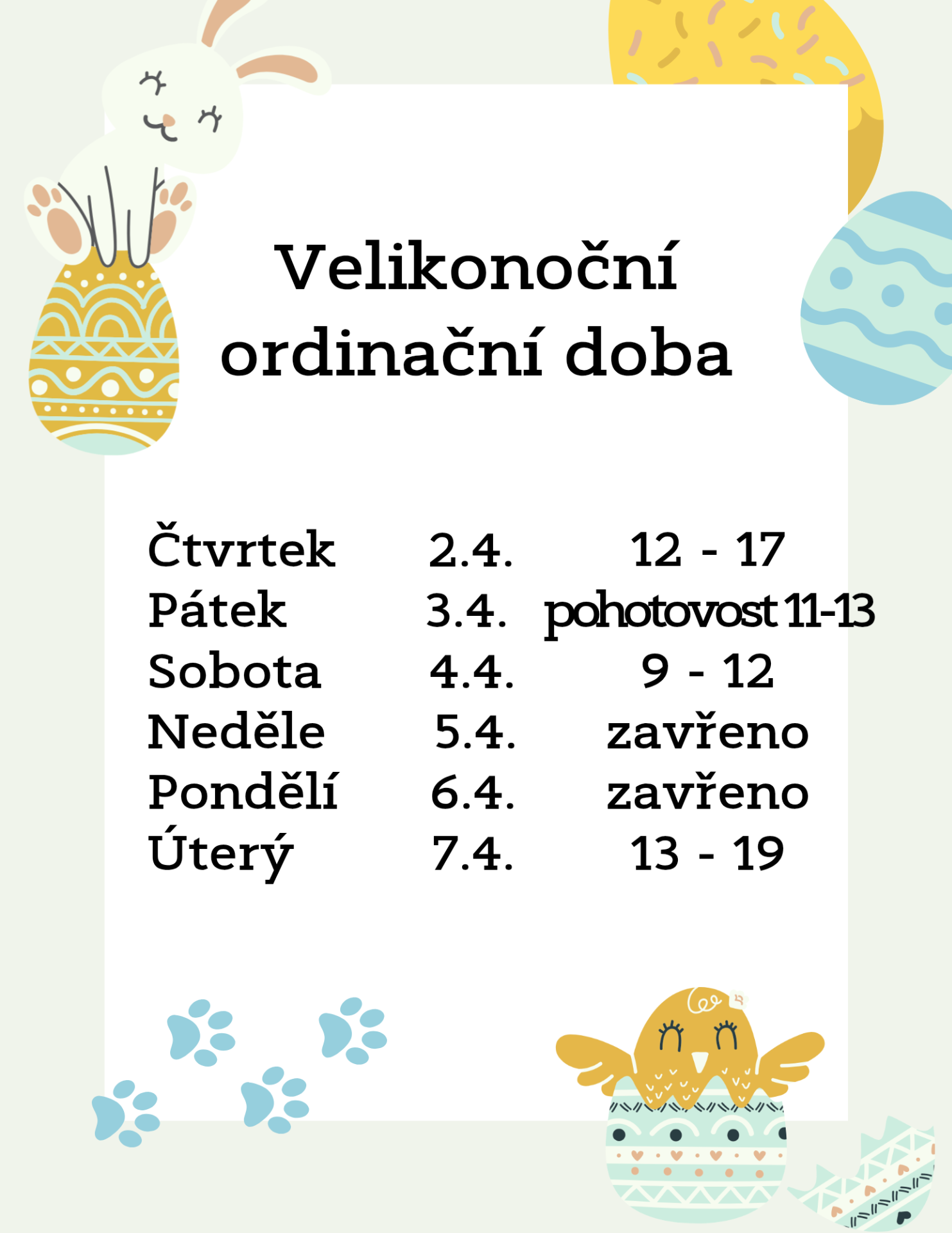 Velikonoční ordinační hodiny